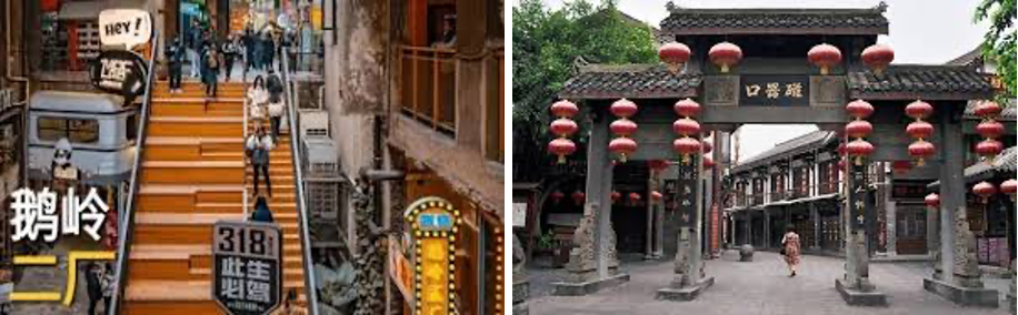 - là khu phố cổ được mệnh danh là "Phép màu Trùng Khánh", nơi lưu giữ những di tích lịch sử hàng trăm năm. Từng là khu vực cư trú của giới thượng lưu và ngoại giao, nay nơi đây được cải tạo thành không gian nghệ thuật với các phòng triển lãm, quán cà phê và trà quán đậm chất hoài cổ, đầy tinh tế.